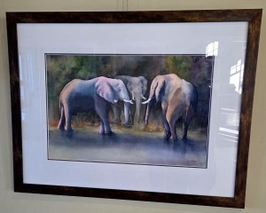Having just arrived in Africa, we found ourselves on a sunset cruise on the Zambezi, just above Victoria Falls. Imagine our excitement when a herd of elephants began crossing the river just ahead of us. My first sighting of these magnificent animals in the wild and I knew I had a great subject for a painting: these majestic creatures in their natural environment under a warm African sun.