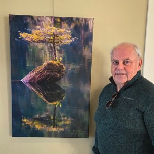 Reflects the persistent isolated life of a tiny Douglas Fir (sometimes referred to as the “Fairy Lake Bonsai Tree”), living uniquely atop a partially submerged nurse tree. It continues to survive with little change in its overall growth from one year to the next.